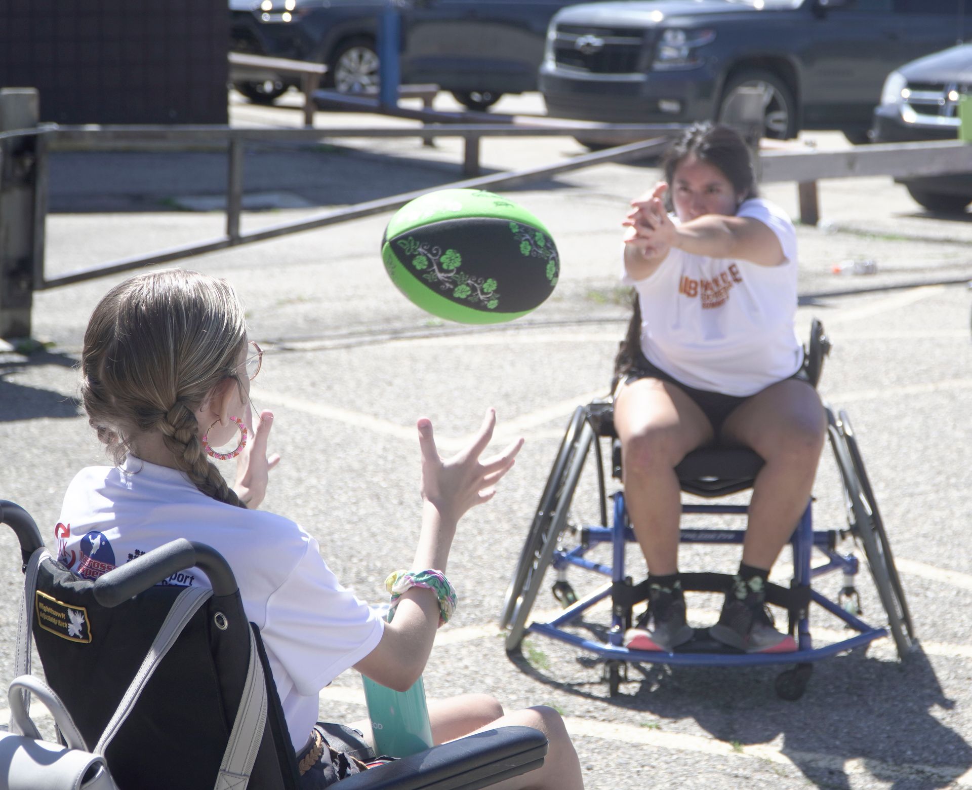 Accessible lacrosse wheelchairs in a truck outside Vivo.